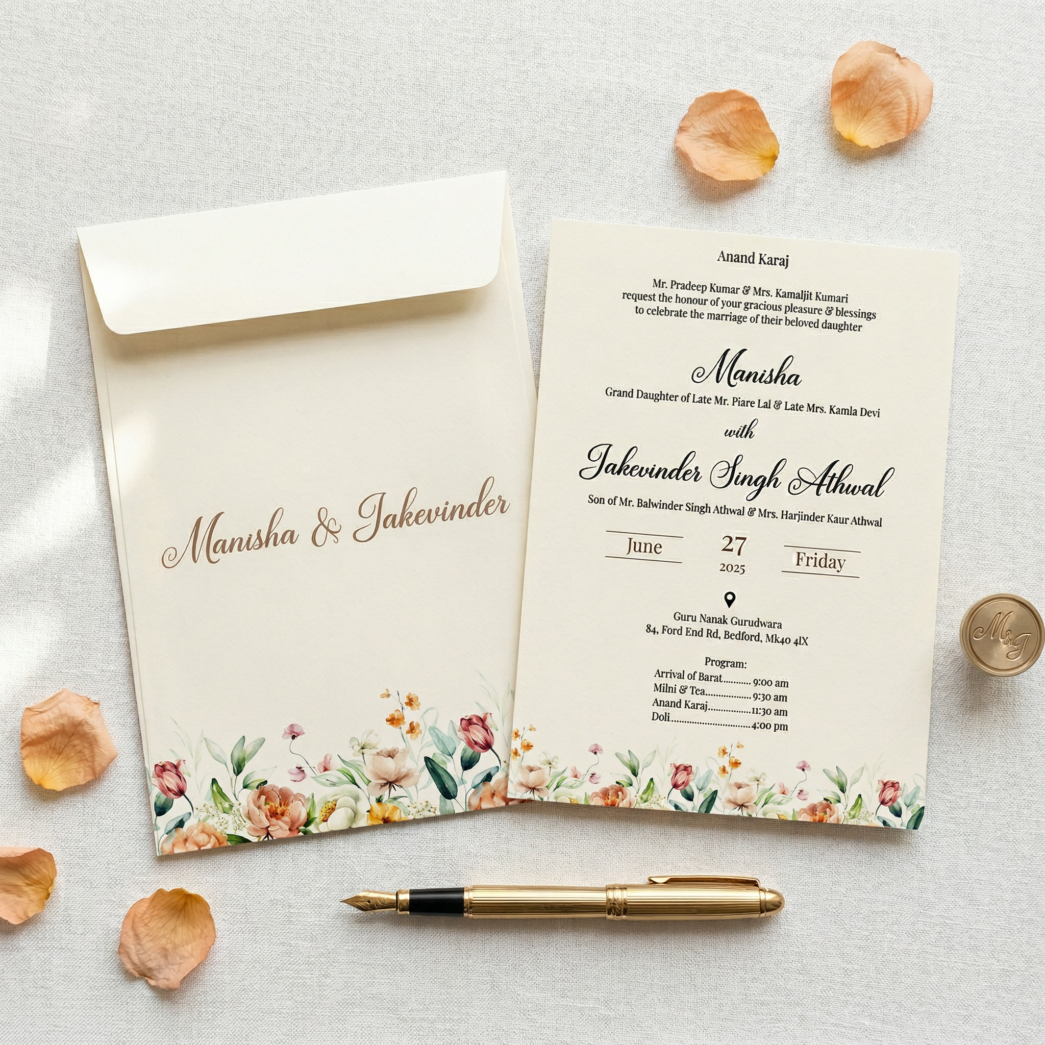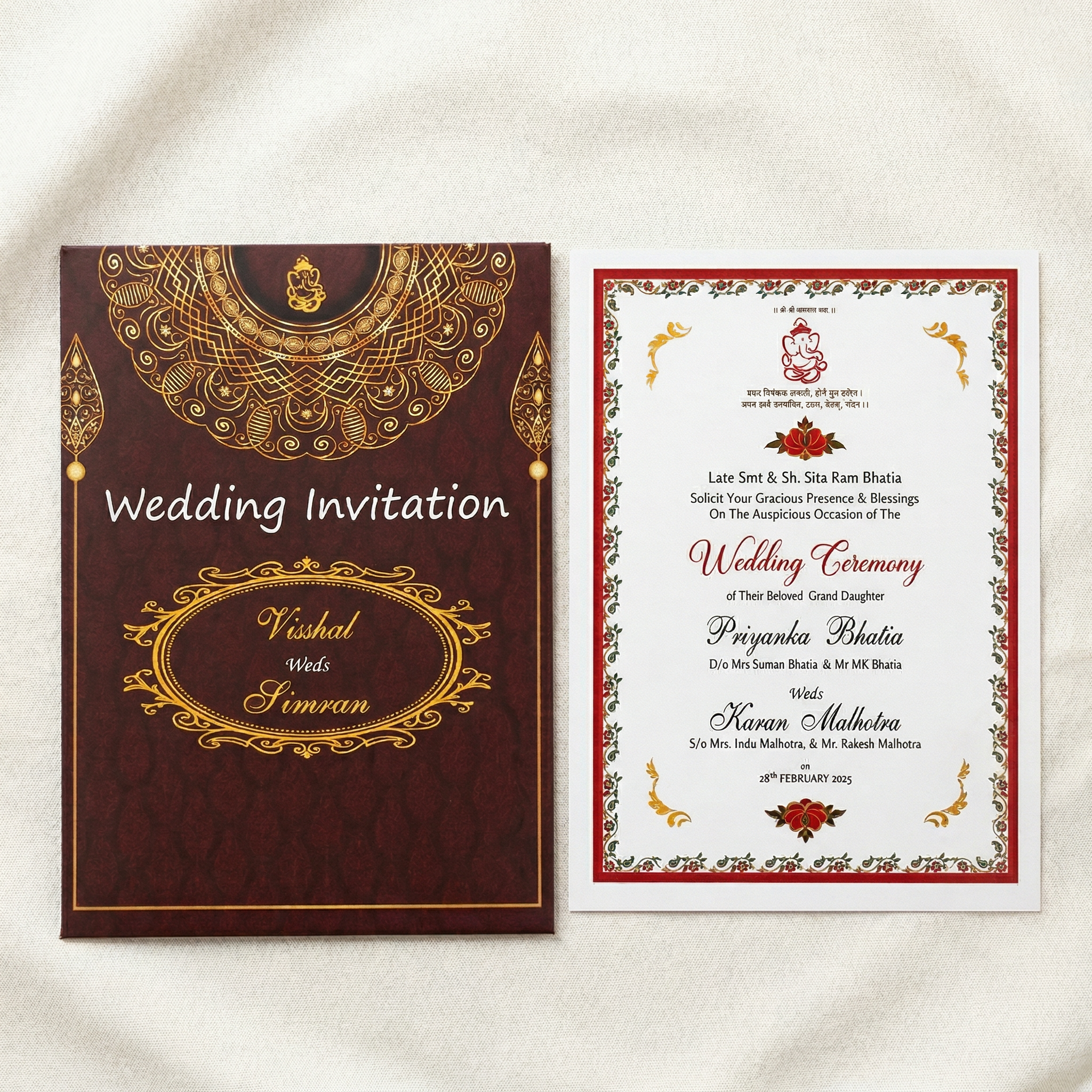 • Vertical and horizontal orientation wedding card design